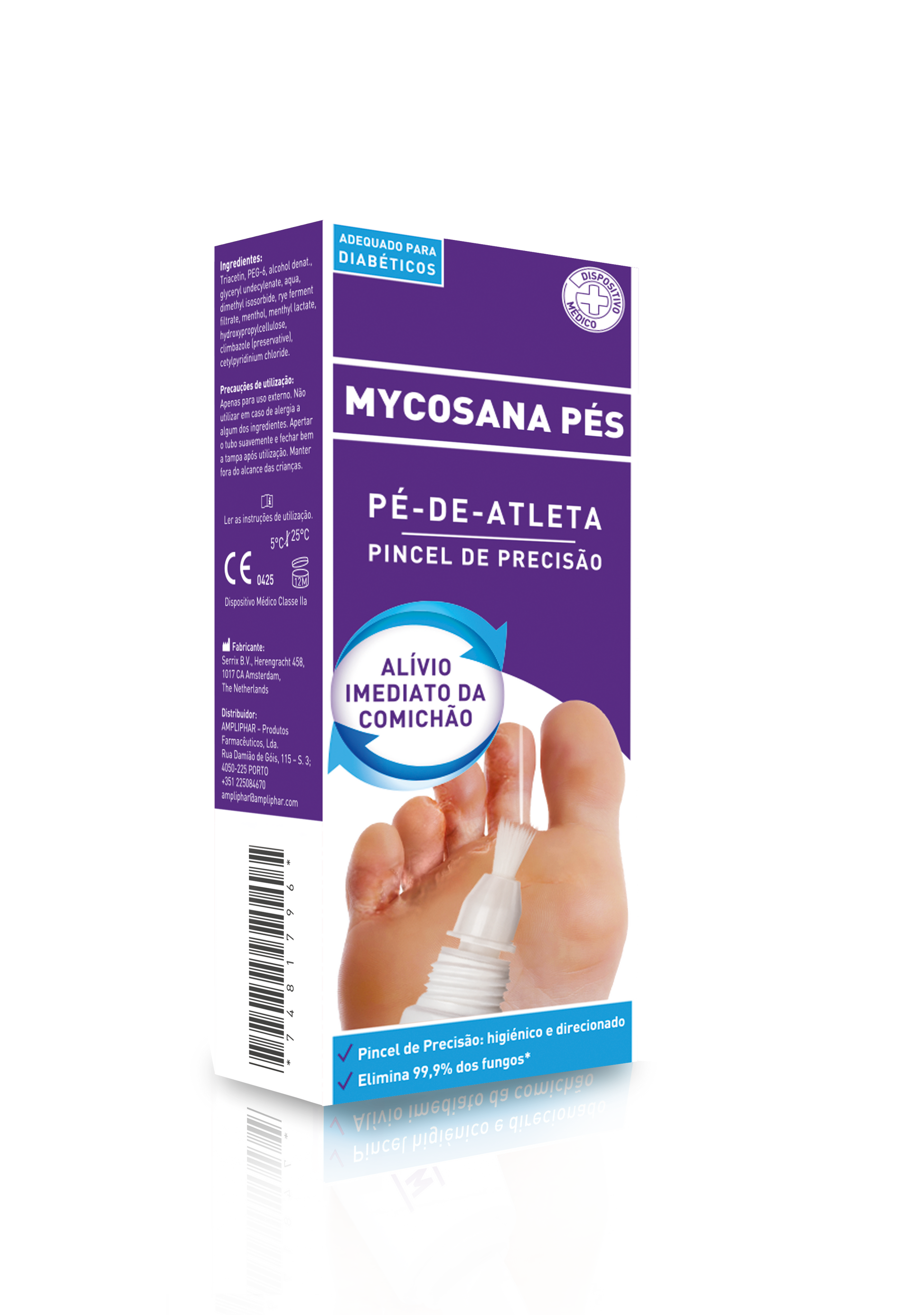 Mycosana pé de atleta gel serve para aliviar os sintomas associados ao pé de atleta. dos pés e inibe o desenvolvimento de fungos, ajudando a aliviar sintomas como comichão, fissuras, ardor, vermelhidão e mau odor. Tem um efeito refrescante e vem com um pincel amplo, higiénico e fácil de usar. É tolerado por diabéticos.