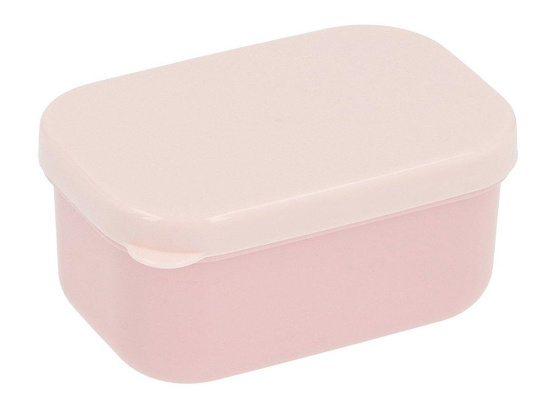 Caixa de fruta rosa com garfo incluído, feita de material seguro e sem BPA. Ideal para transportar frutas ou lanches separadamente. Não é hermética, mas é adequada para máquina de lavar louça até 40º. Está indicado para crianças e adultos que procuram uma lancheira prática.