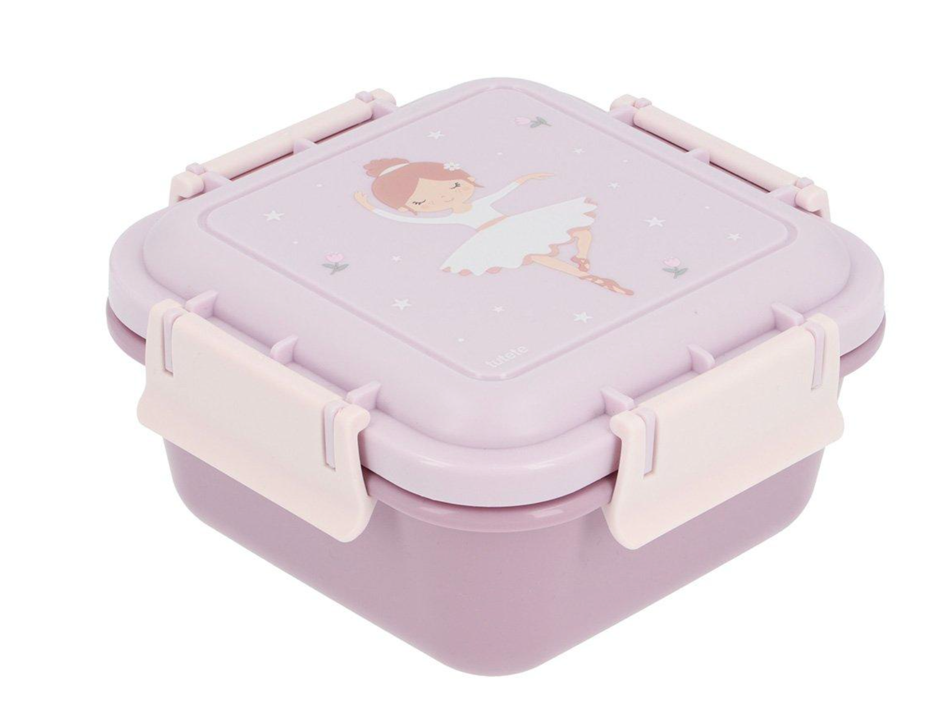 A Tutete caixa grande ballet é uma caixa de lanche grande ideal para levar snacks ao parque ou o almoço à escola. Fecha com facilidade e tem uma ilustração bonita na tampa.