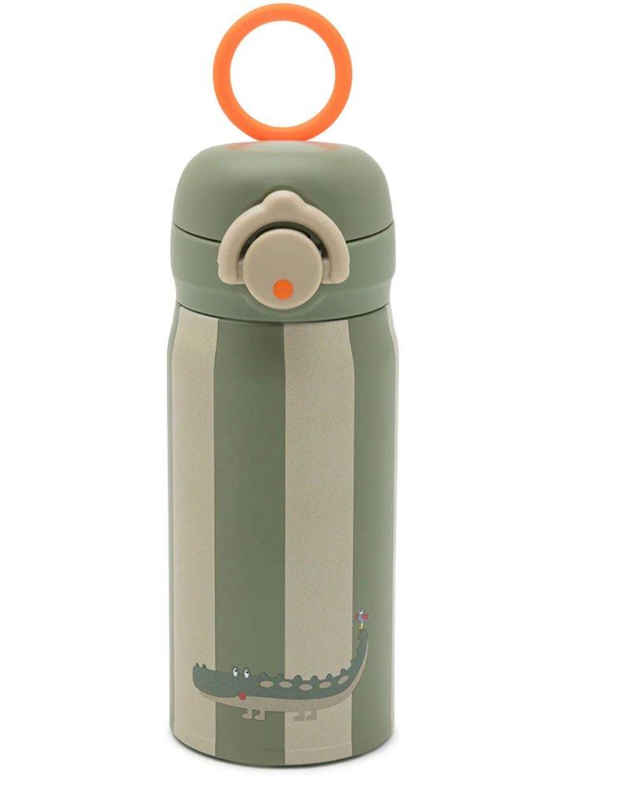 Ideal para crianças em idade pré-escolar e escolar, a Tutete garrafa de aço termica noui crocodile vem com um cabide de silicone para facilitar o transporte e uma base de silicone para evitar ruídos e pancadas.
