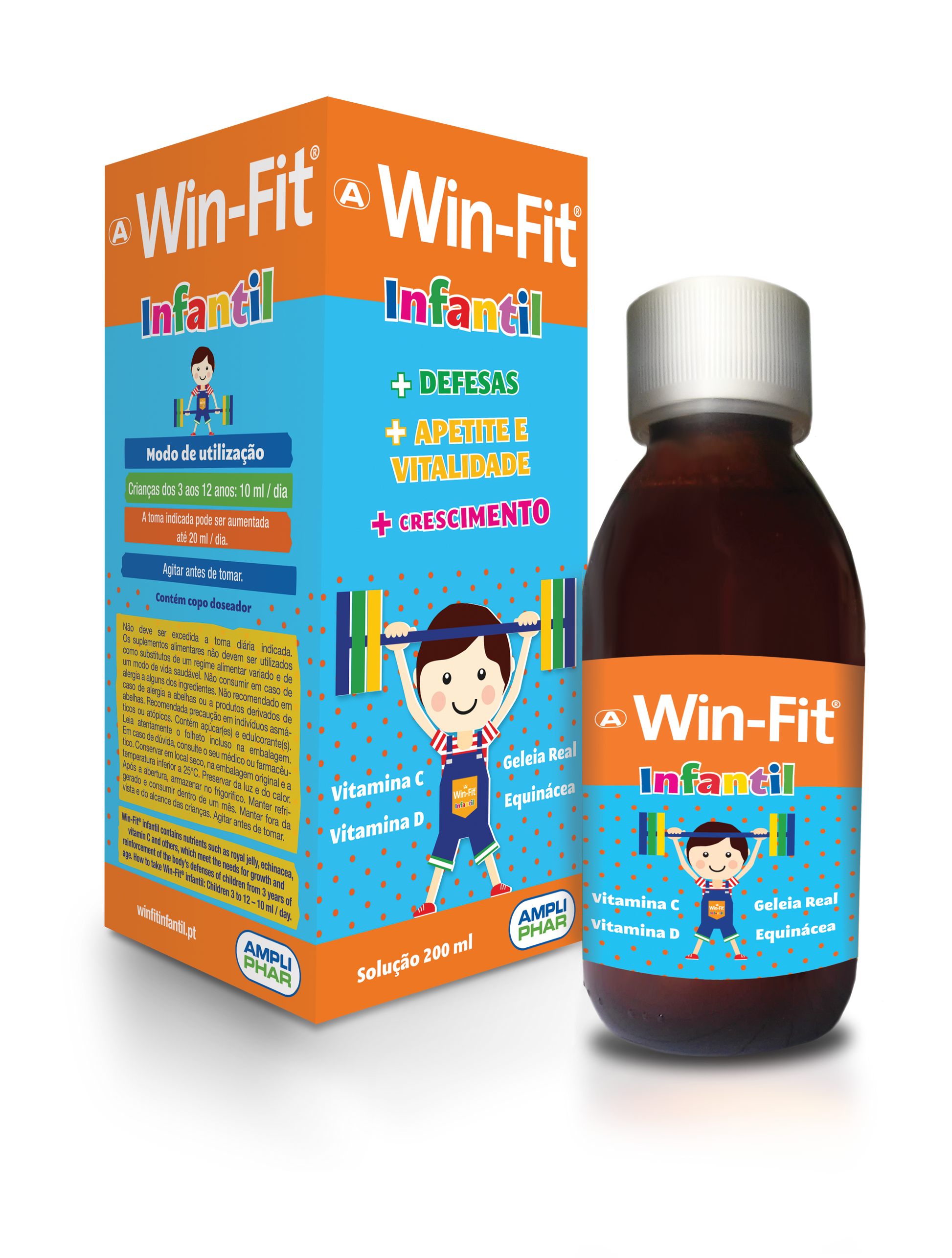 Win Fit Infantil: solução oral para crianças a partir dos 3 anos que ajuda a reforçar as defesas do organismo e a fortalecer o sistema imunitário, estando indicada para aliviar o resfriado comum e a tosse.